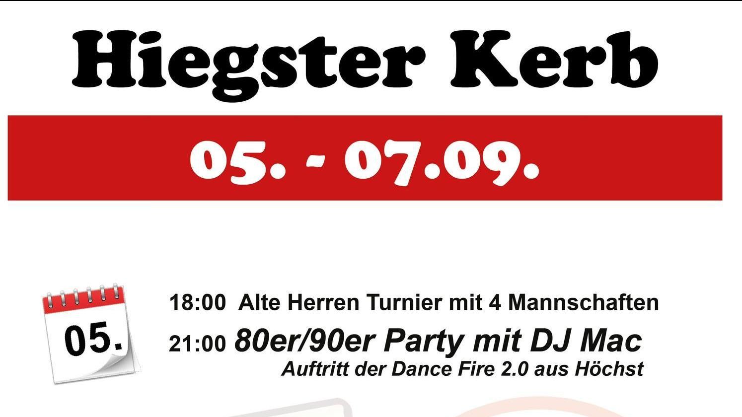 Vom 05. bis 07. September lädt der VfB Höchst wieder herzlich zur Hiegster Kerb am Sportplatz ein – drei Tage voller Fußball, Musik, Stimmung und Kulinarik im großen Festzelt! Los geht’s am Freitagabend: Ab 18:00 Uhr treten beim AH-Turnier die Alten Herren gegeneinander an – ein sportlicher Start ins Wochenende! Ab 21:00 Uhr heizen DJ Mac und die Höchster Dance Fire 2.0 bei der 80er/90er-Party ordentlich ein. Tanzen, feiern und Spaß haben ist angesagt! Der Samstag steht ganz im Zeichen des Fußballs und des Schlagers: Um 16:15 Uhr spielt der VfB Höchst II gegen die FSG Altenstadt II, gefolgt vom Spiel der Ersten Mannschaften um 18:00 Uhr: VfB Höchst I gegen FSG Altenstadt I – das Derby verspricht Spannung pur! Ab 21:00 Uhr heißt es dann: Schlagernacht mit DJ Marcello! Für alle Freunde der guten Laune und Mitsing-Hits ein absolutes Muss. Der Sonntag beginnt um 10:30 Uhr mit einem Zeltgottesdienst, gefolgt vom Frühschoppen ab 11:30 Uhr zum gemütlichen Kerbausklang. Ab 12:00 Uhr gibt es ein leckeres Mittagessen mit Schnitzel, Hackbraten, Krautsalat und einer Auswahl an frischen Salaten. Vorbestellungen und Abholung sind möglich! Das ganze Wochenende über sorgen Grillspezialitäten, Pommes und ein Cocktailautomat für das leibliche Wohl – für Groß und Klein ist etwas dabei. Der VfB Höchst freut sich auf viele Besucher und ein gelungenes Kerbwochenende mit Euch!