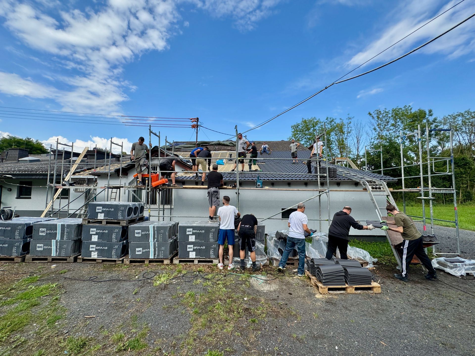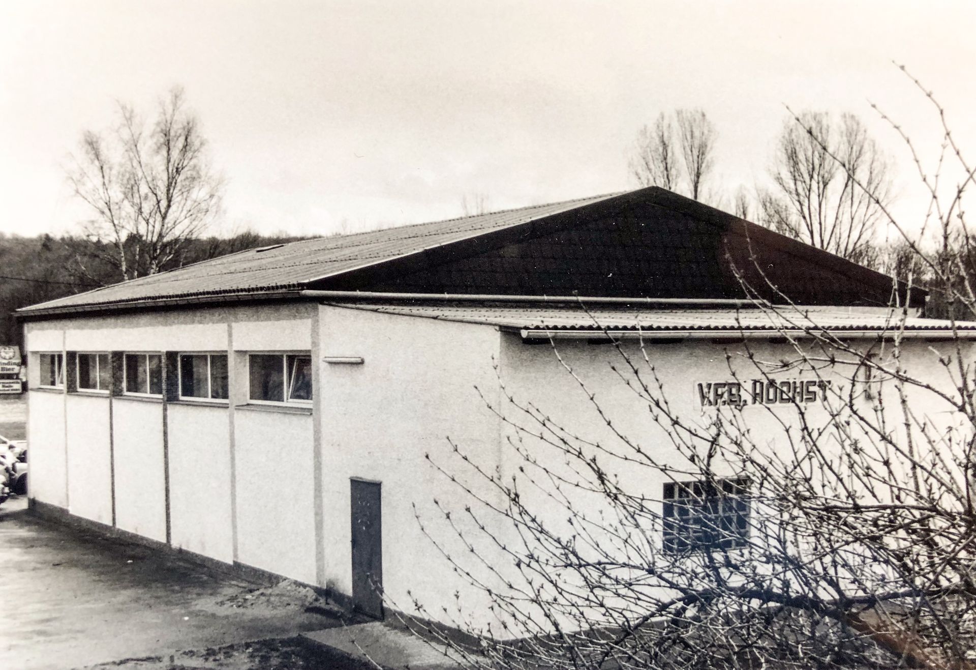 Im Jahr 1972 fiel unser Sportplatz dem Neubau der Straße von Höchst in Richtung Waldsiedlung zum Opfer. Ein neuer Sportplatz wurde im Auftrag des zuständigen Straßenbauamtes entlang der neuen Straße gebaut und konnte mit Hilfe der Gemeinde bereits 1973 mit einer leistungsfähigen Flutlichtanlage ausgestattet werden. Als Gegenleistung errichteten Mitglieder des Vereins unter der Leitung des Vorsitzenden Heinrich Rausch den Rohbau der Höchster Friedhofshalle.