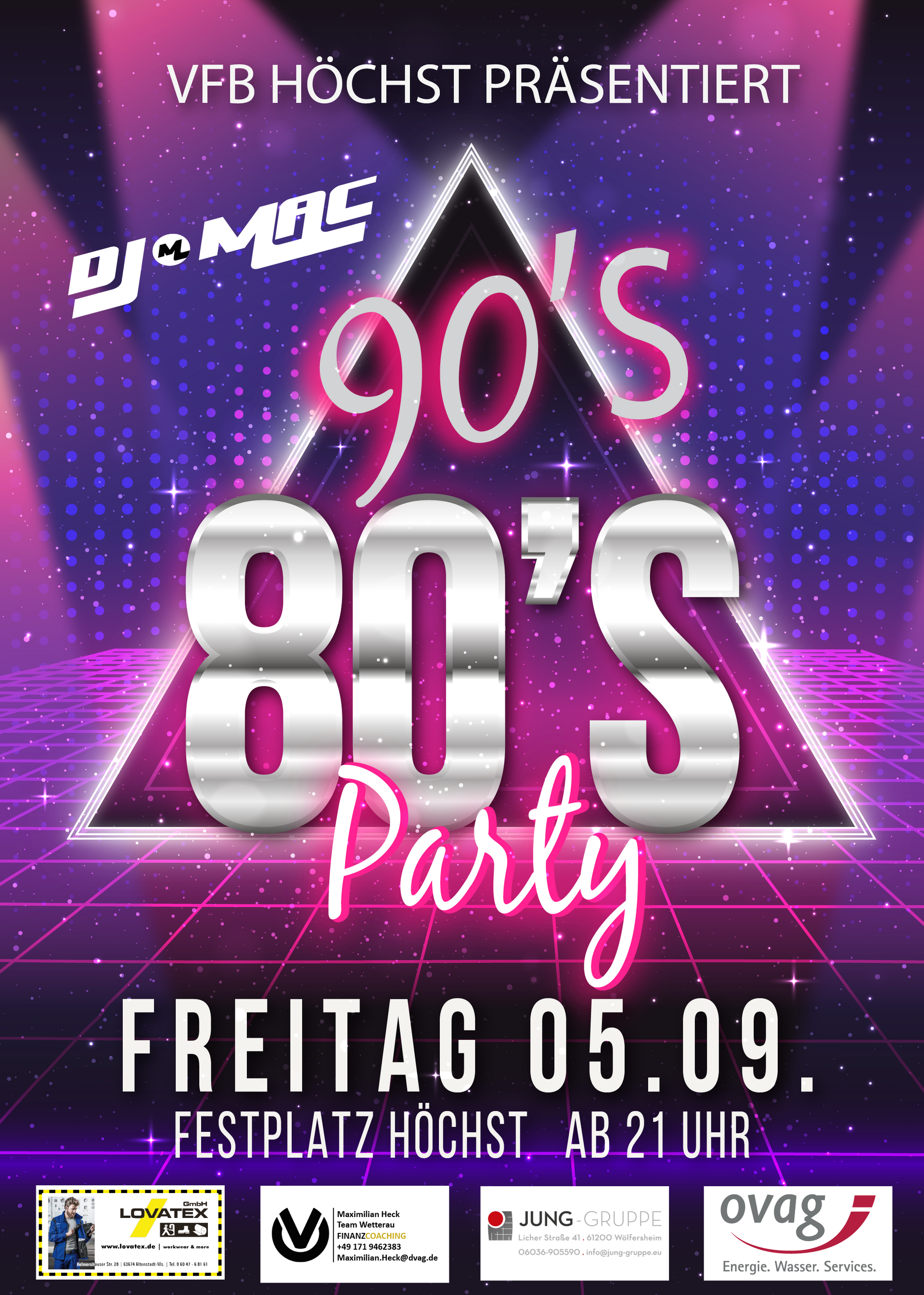 Ab 21:00 Uhr heizen DJ Mac und die Höchster Dance Fire 2.0 bei der 80er/90er-Party ordentlich ein. Tanzen, feiern und Spaß haben ist angesagt!